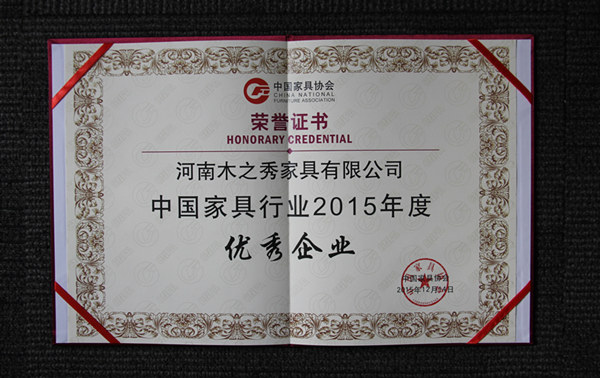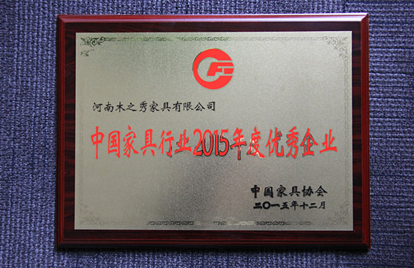 木之秀家具榮獲“中國家具行業2015年度優秀企業”榮譽