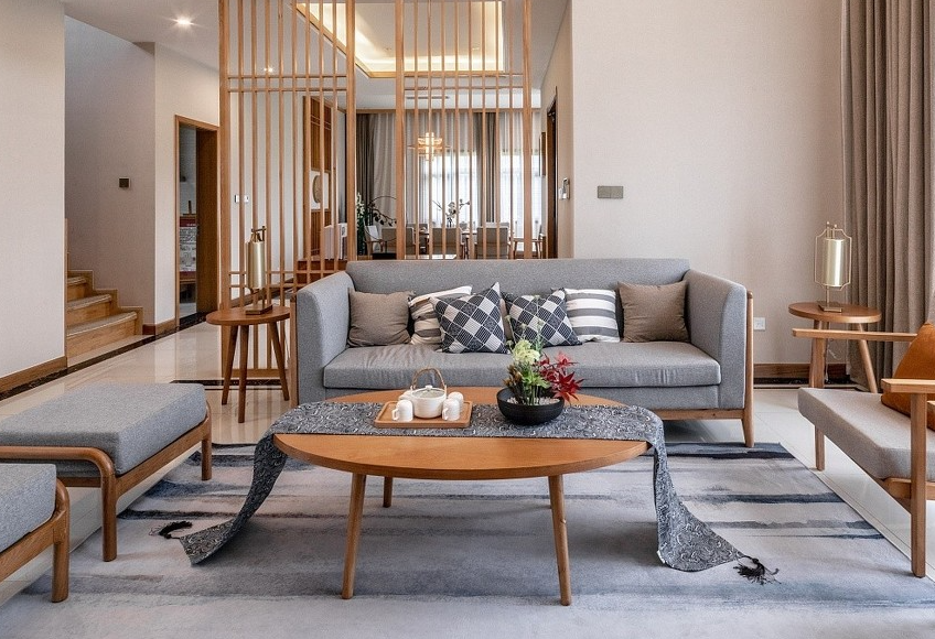 酒店家具定制傳統中式風被賦予古典韻味,舒緩的意境永遠是東方人的獨特感受。城市的魅力為這座中式別墅的裝修增添了不錯的美感!酒店家具定制中式設計,背字壁板沙發的組合,充分展